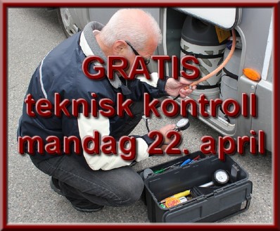Mandag 22. april fra kl 15 og fram til ca kl 21 tilbyr vi dere som er medlemmer gratis teknisk kontroll av campingvogner og bobiler i samarbeid med Spydeberg Bilverksted.