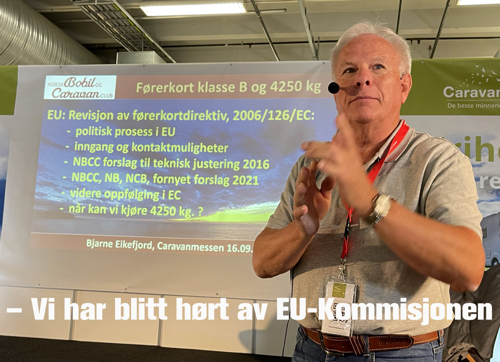 Innspillene fra Bjarne Eikefjord på vegne av Norsk Bobil og Caravan Club fikk i 2021 eget referansenummer i EU-systemet, hvilket betyr at de var tatt inn i saksgangen for revisjon av førerkortdirektivet. Allerede i fjor høst kunne han røpe at signalene var positive og at innspillene fra NBCC ville bli fulgt opp av EU-kommisjonen.