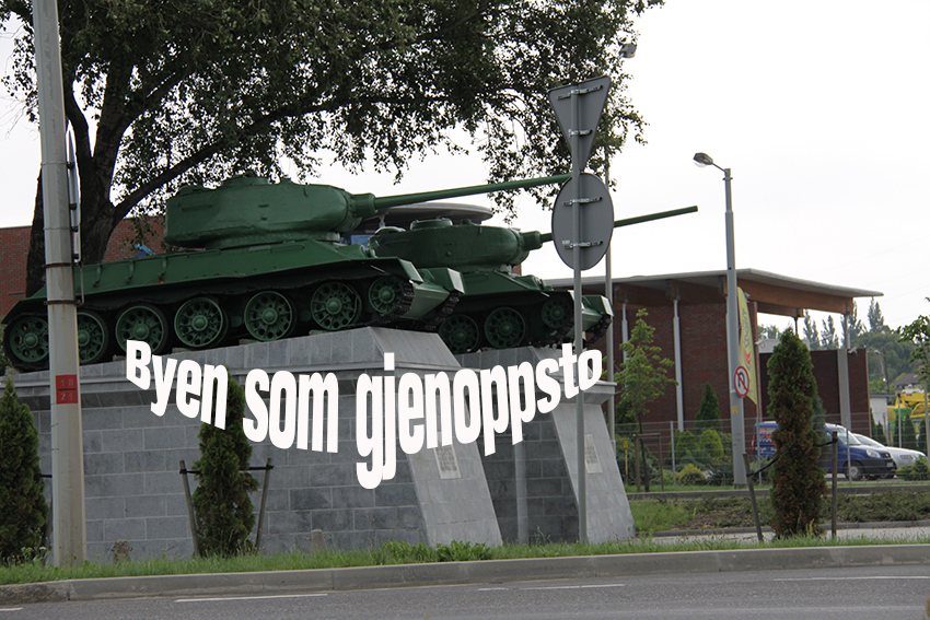 Ved innkjøringen til byen står også et russisk krigsminnesmerke med to T-34 stridsvogner. Her kan man også se bygninger som overlevde krigshandlingene, men som har blitt reparert. Selve byen består derfor av en blanding av nye og gamle bygg.