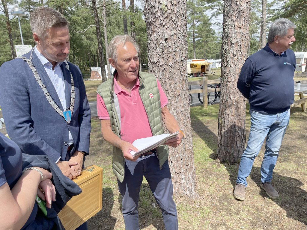 Til slutt kom skiltet opp på veggen til Sjøsanden Camping i Mandal, og det sørget vaktmester Leif Gjertviksten for mens investor Thorstein Berg selv holdt skiltet. Du kan lese artikkelen i sin helhet i Bobil og Caravan Magasinet nummer 4, men også digitalt hos Bobilverden.no.