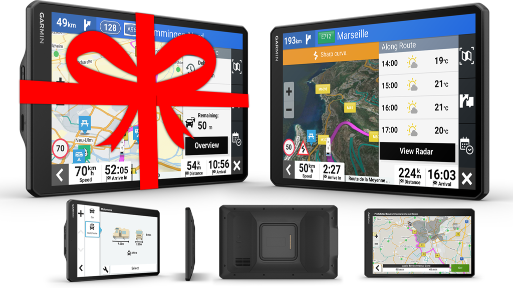 Garmin tilbyr Camper-GPS med en rekke funksjoner utviklet spesielt for eventyr på veien – enten du kjører en kompakt campervan eller en tradisjonell bobil. Serien leveres med 7, 8 eller 10 tommers skjerm.