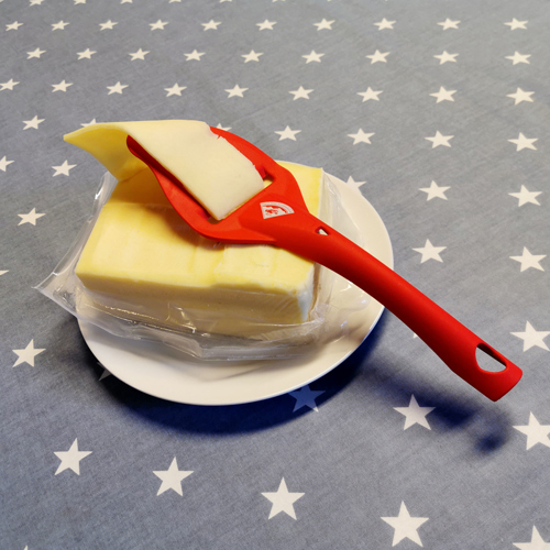 Flott ostehøvel i hardplast med diskre logo. Passer perfekt til mykere oster. Den veier også bare 28 gram, perfekt til campingturen. Tåler oppvaskmaskin.